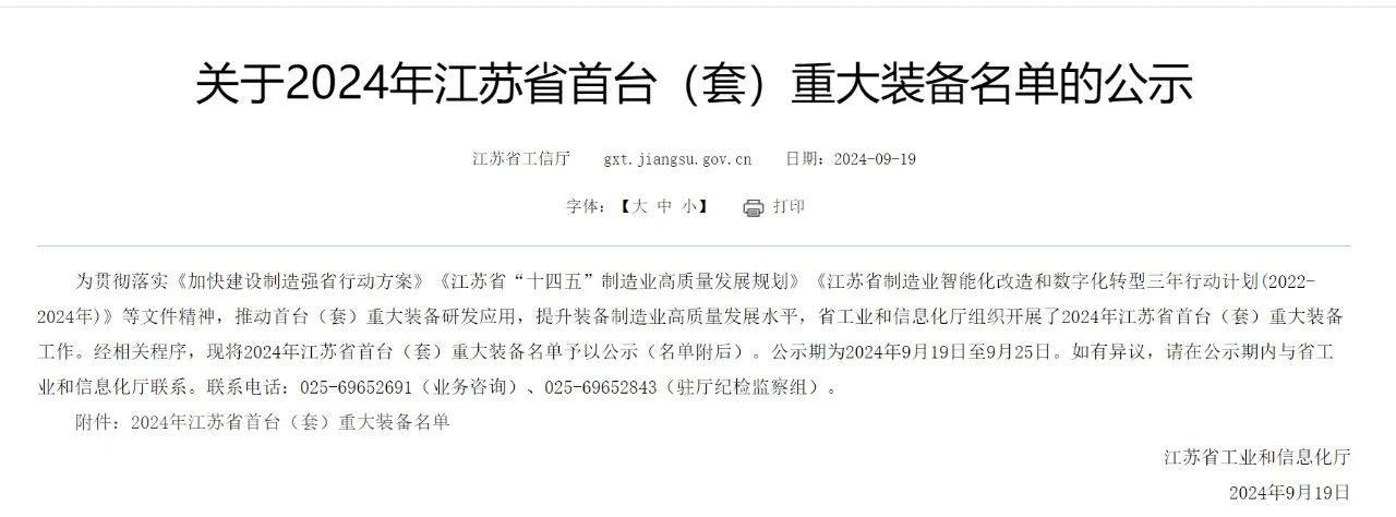 江苏省首台(套)重大技术装备是指国内实现重大技术突破、拥有知识产权的装备产品,包括整机设备、核心系统和关键零部件等,助力推动智能制造业发展。